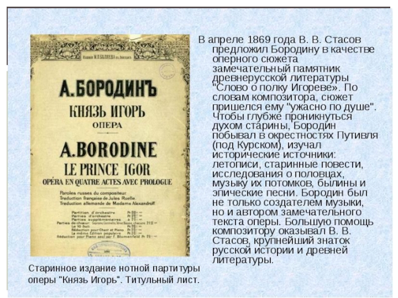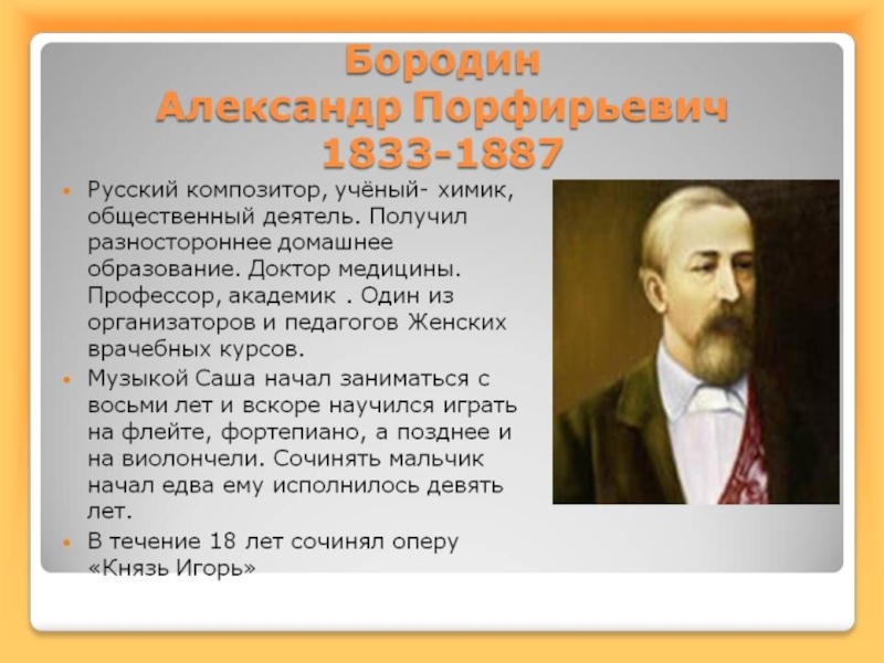 Презентация, доклад по музыкальной литературе Александр Бородин