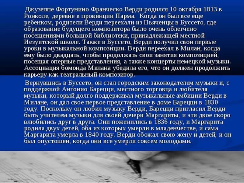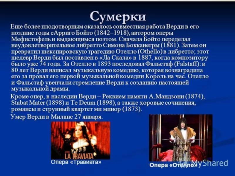 Презентация, доклад по музыкальной литературе Джузеппе Верди
