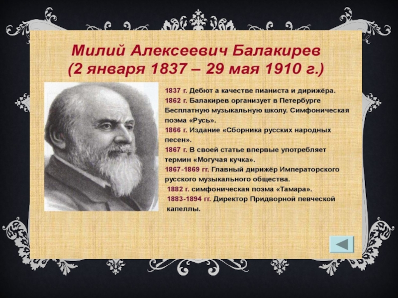 Презентация, доклад по музыкальной литературе Милий Балакирев