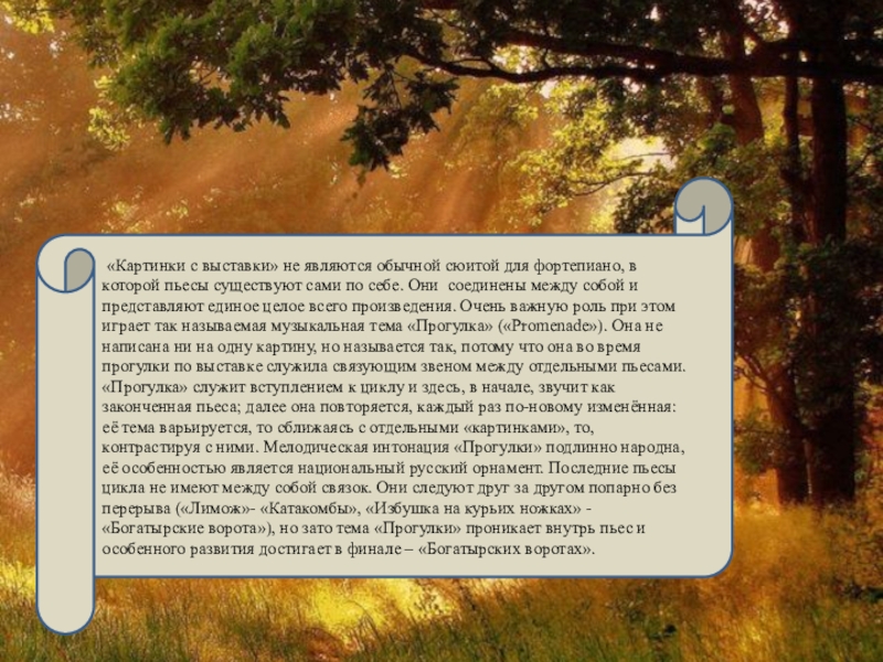 Слайд 13 «Картинки с выставки» не являются обычной сюитой для фортепиано, в