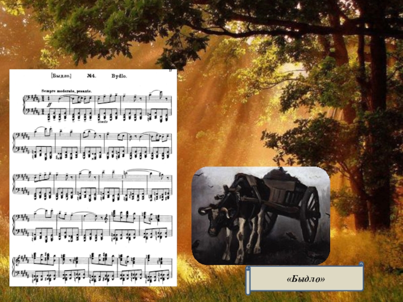характеристики («Два еврея», частично «Гном»), бытовые сценки («Тюльери», «Лиможский рынок», «Быдло»); сказочные и былинные образы русского народного творчества («Избушка на курьих ножках», «Богатырские ворота») и другие. Только одна пьеса – «Балет невылупившихся птенцов» - написана в общепринятом жанре скерцо.