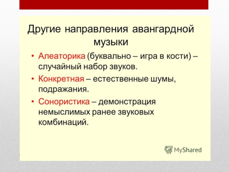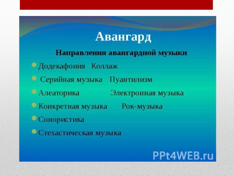 Презентация, доклад по музыкальной литературе Направление.Авангард