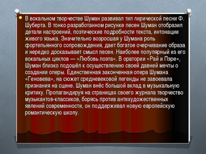 Презентация, доклад по музыкальной литературе Роберт Шуман