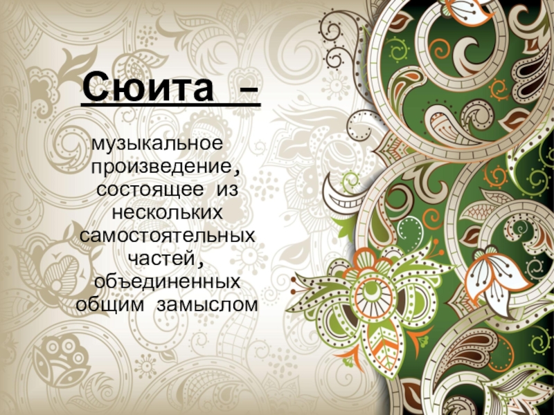 Слайд 5Сюита состоит из 4 частей, каждая из которых имеет название: