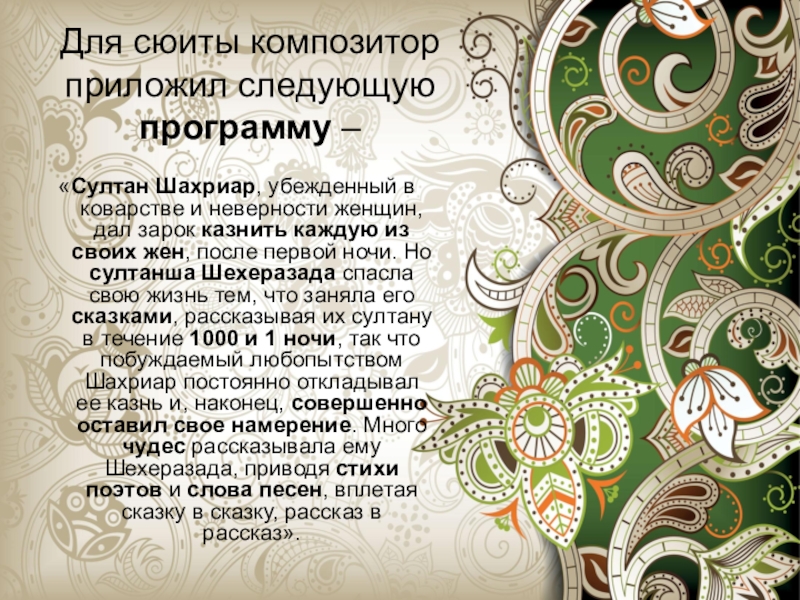 Слайд 4Для сюиты композитор приложил следующую программу –