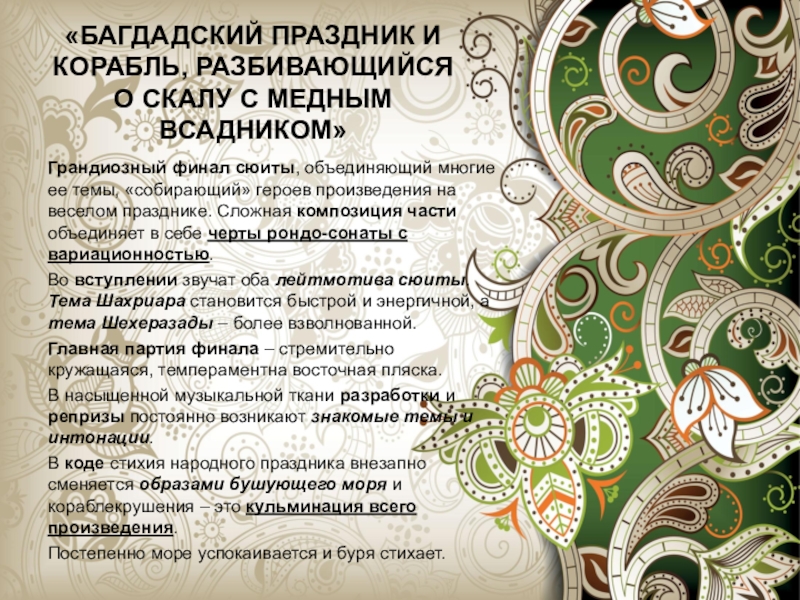 Слайд 10«БАГДАДСКИЙ ПРАЗДНИК И КОРАБЛЬ, РАЗБИВАЮЩИЙСЯ О СКАЛУ С МЕДНЫМ ВСАДНИКОМ»