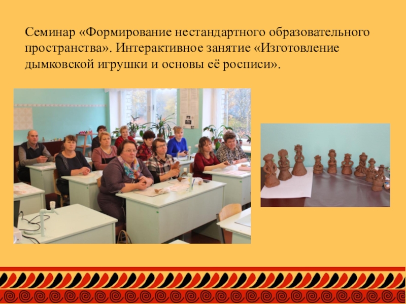 Слайд 14Семинар «Формирование нестандартного образовательного пространства». Интерактивное занятие «Изготовление дымковской игрушки и