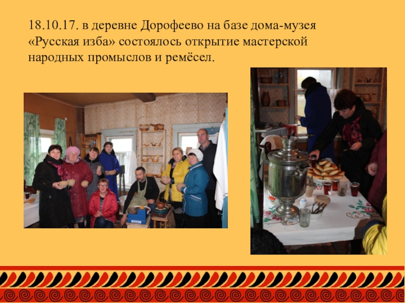 Слайд 1218.10.17. в деревне Дорофеево на базе дома-музея «Русская изба» состоялось открытие