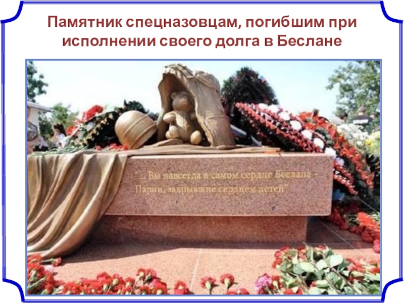 Слайд 25Памятник спецназовцам, погибшим при исполнении своего долга в Беслане