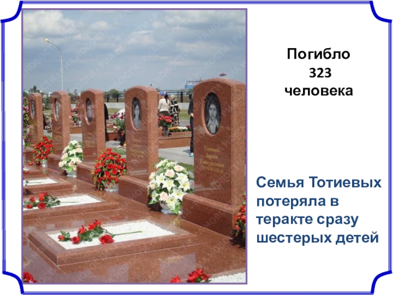 Слайд 21Семья Тотиевых потеряла в теракте сразу шестерых детей