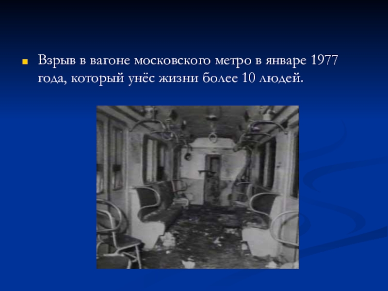 Взрыв в вагоне московского метро в январе 1977 года, который унёс жизни более 10 людей.