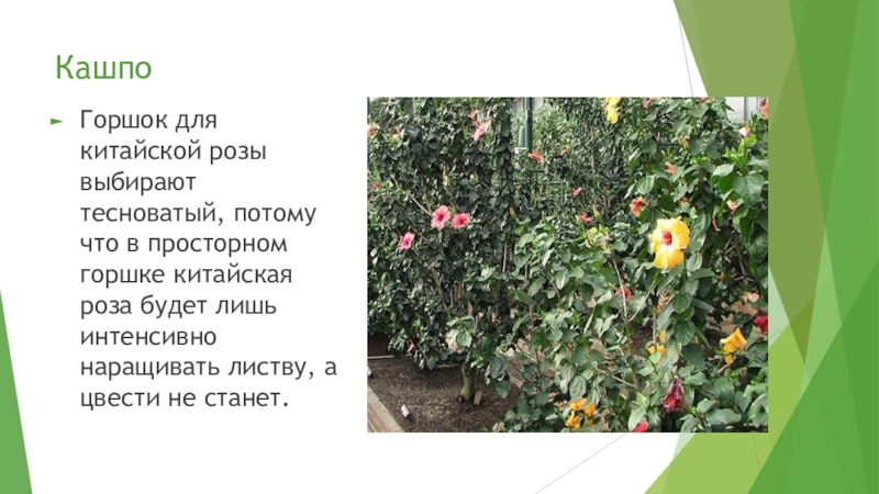 Горшок для китайской розы выбирают тесноватый, потому что в просторном горшке