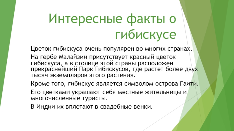 В Египте семена гибискуса использовали для очищения дыхания, а эмульсию масла с молоком — для снятия зуда.