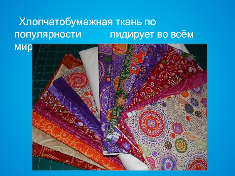 Хлопчатобумажная ткань по популярности      лидирует во всём мире.