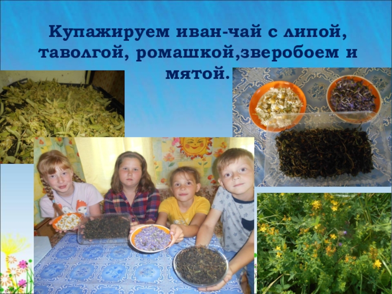 Слайд 18 Купажируем иван-чай с липой, таволгой, ромашкой,зверобоем и мятой.