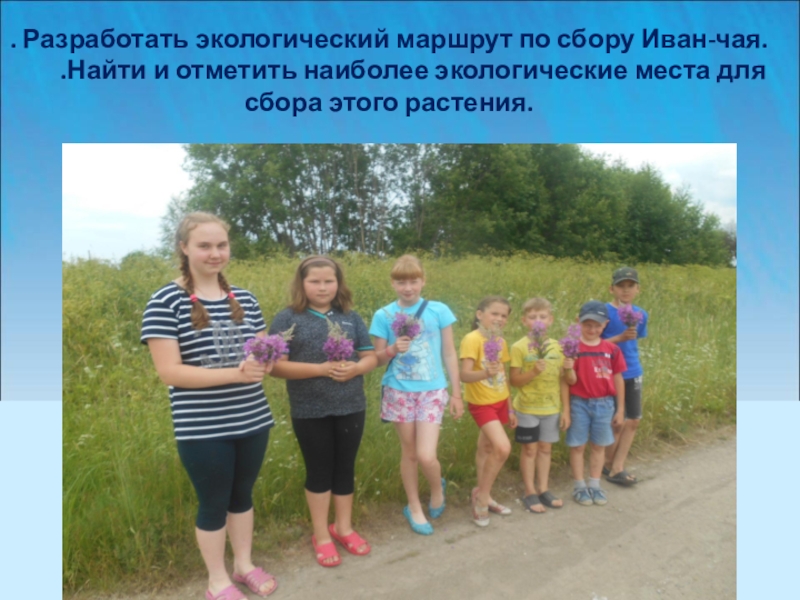 Слайд 7. Разработать экологический маршрут по сбору Иван-чая. .Найти