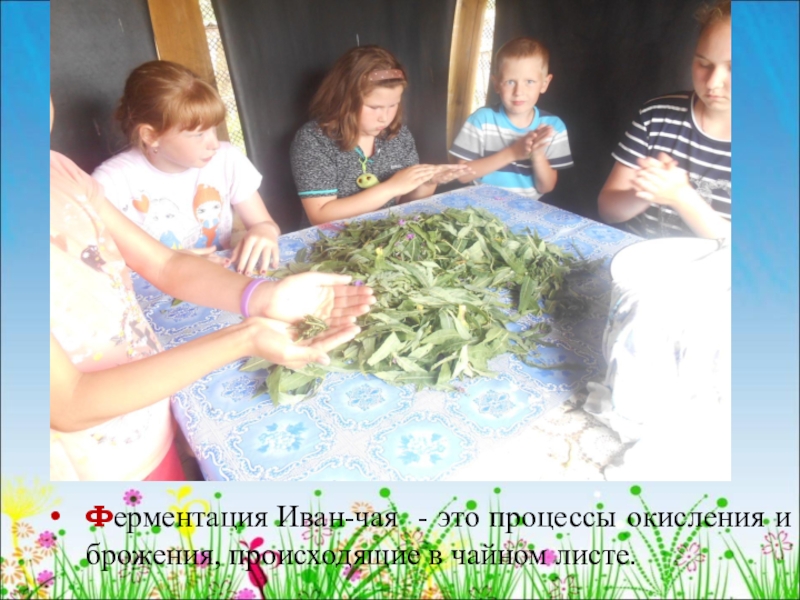 Слайд 11 Чтобы запустить эти процессы, листья Иван-чая надо хорошенько помять, покрутить,