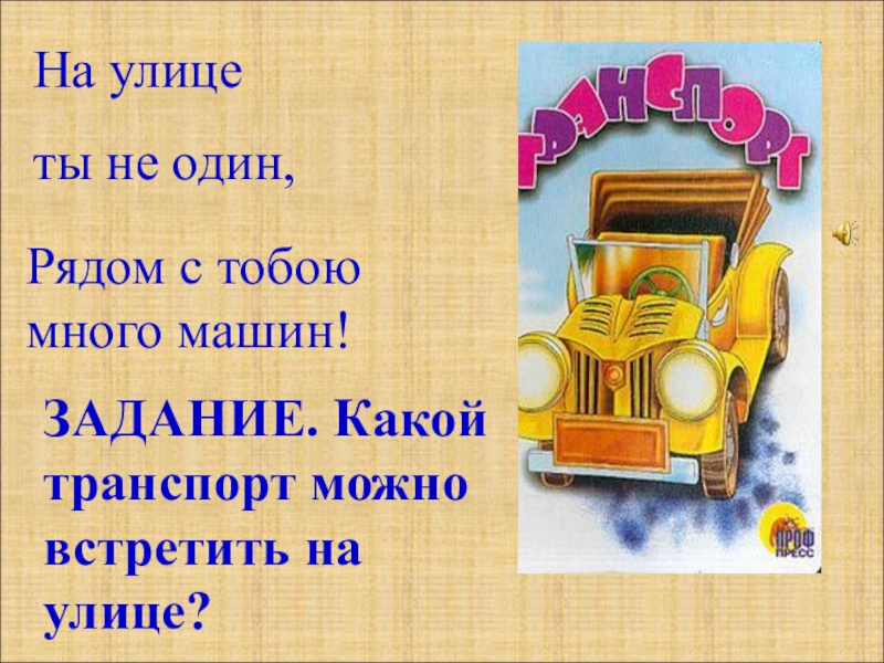 Рядом с тобою много машин! На улице ты не один,ЗАДАНИЕ. Какой транспорт можно встретить на улице?