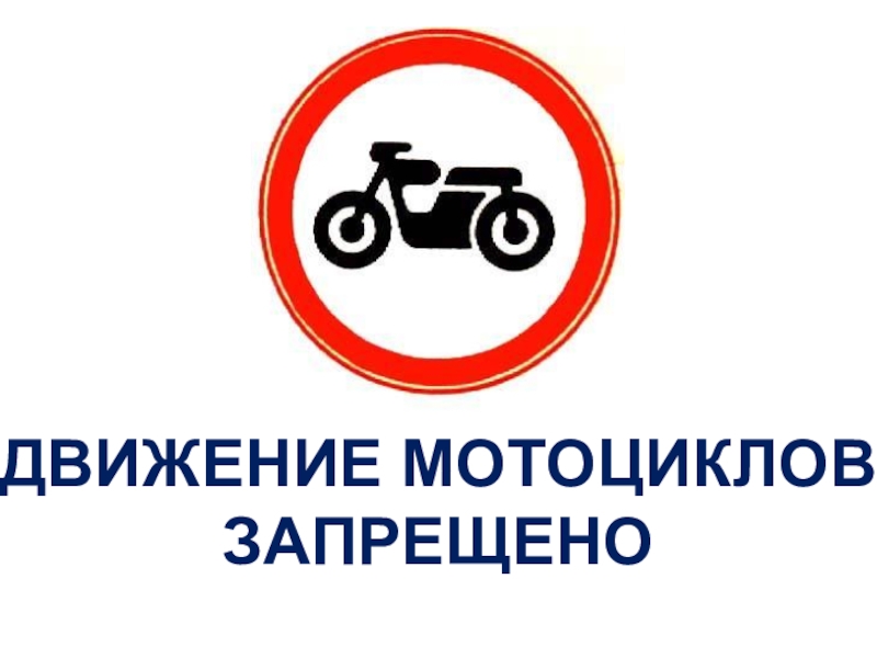 Слайд 7ДВИЖЕНИЕ МОТОЦИКЛОВ ЗАПРЕЩЕНО