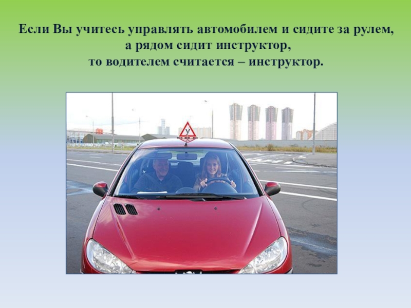 Слайд 6Если Вы учитесь управлять автомобилем и сидите за рулем,