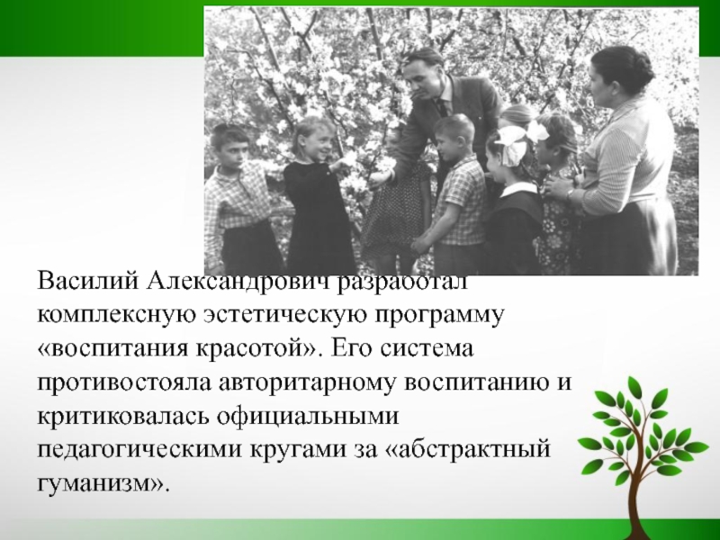 Слайд 4Василий Александрович разработал комплексную эстетическую программу «воспитания красотой». Его система противостояла