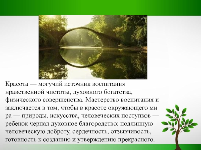 Слайд 8Красота — могучий источник воспитания нравственной чистоты, духовного богатства, физического совершенства.
