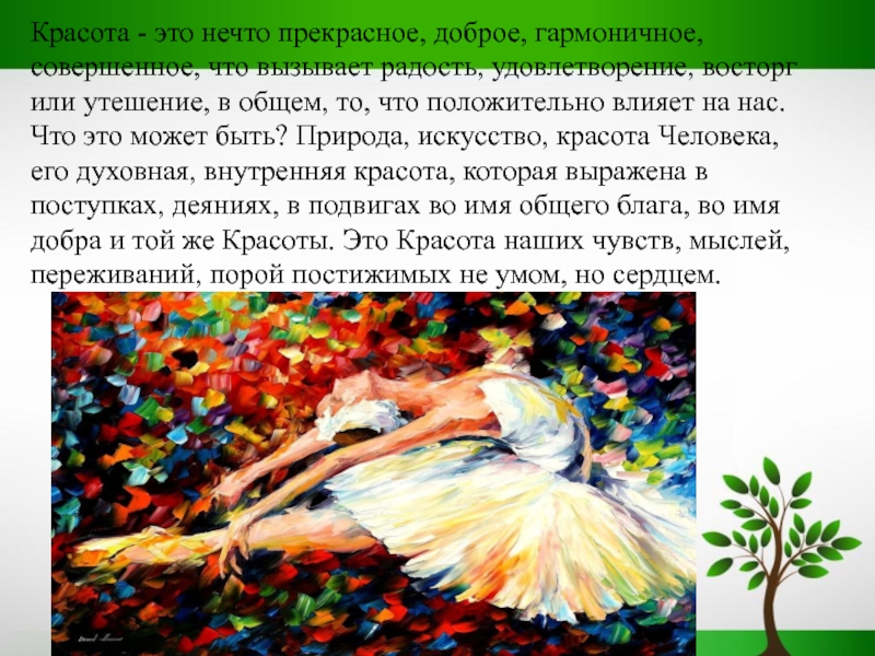 Слайд 12Красота - это нечто прекрасное, доброе, гармоничное, совершенное, что вызывает радость,