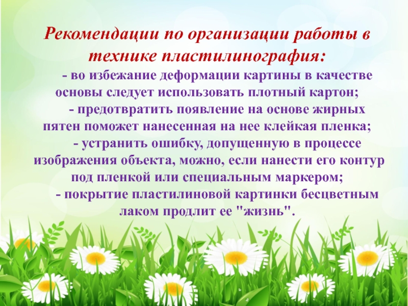 Слайд 24Рекомендации по организации работы в технике пластилинография: