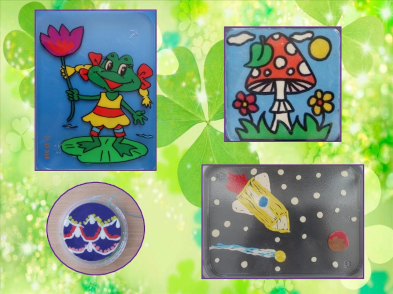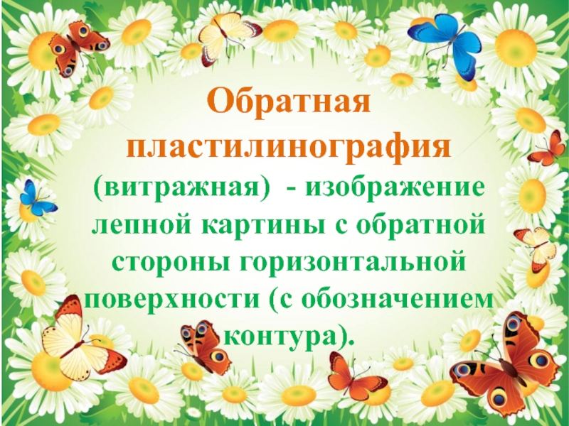 Слайд 9Обратная пластилинография (витражная) - изображение лепной картины с обратной стороны горизонтальной
