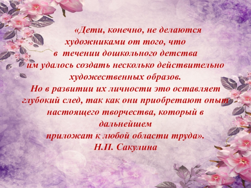 Но в развитии их личности это оставляет глубокий след, так как они приобретают опыт настоящего творчества, который в дальнейшем