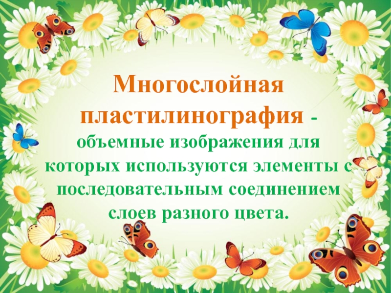 Слайд 16Многослойная пластилинография - объемные изображения для которых используются элементы с последовательным