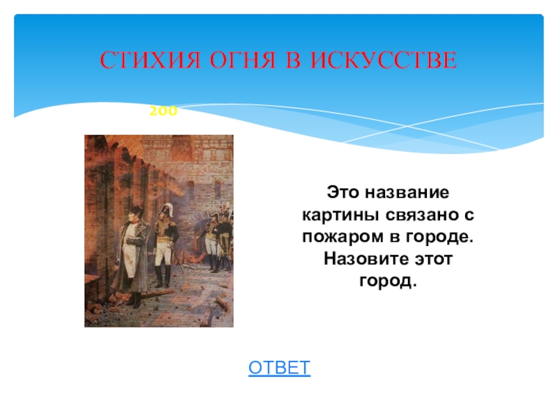 Это название картины связано с пожаром в городе. Назовите этот город.