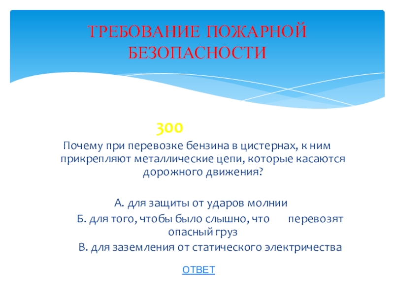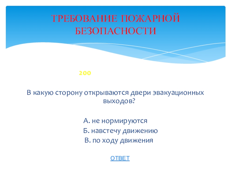 ТРЕБОВАНИЕ ПОЖАРНОЙ БЕЗОПАСНОСТИ
