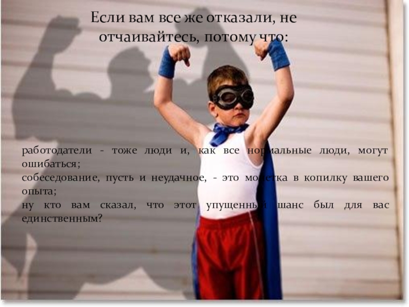 во-вторых, проще принимать отказ, т.к. он в данном случае будет следствием несовпадения взглядов, что никак не может принизить Вашего достоинства.