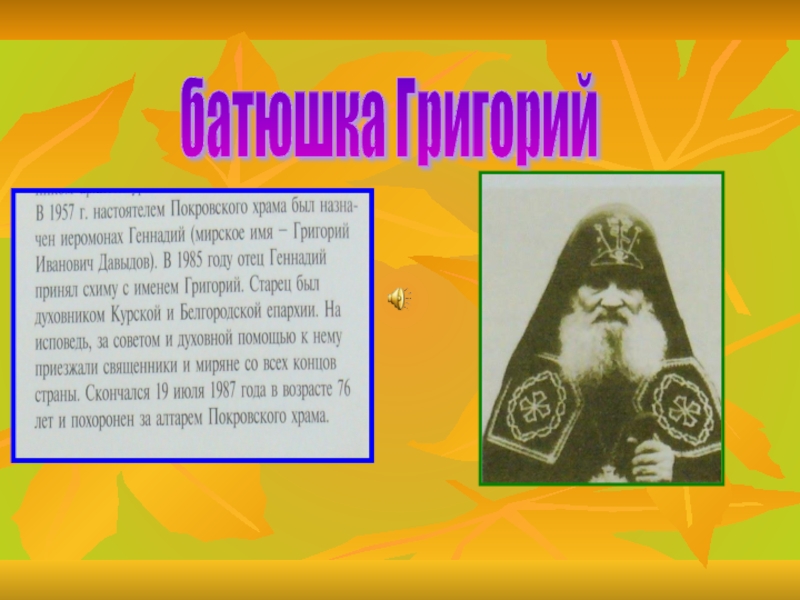 Слайд 12Автор книги о старце Григории отец Сергий Клюйко