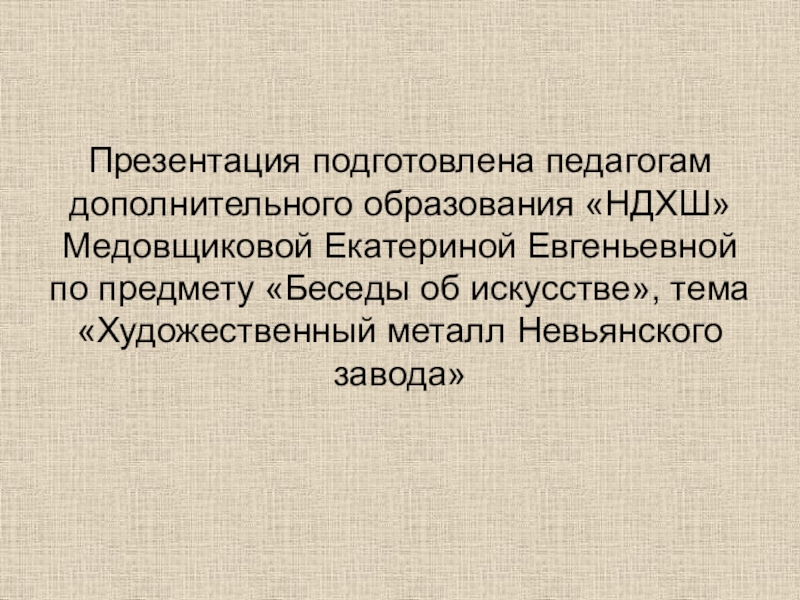 Презентация подготовлена педагогам дополнительного образования «НДХШ» Медовщиковой Екатериной Евгеньевной по предмету «Беседы об искусстве», тема «Художественный металл