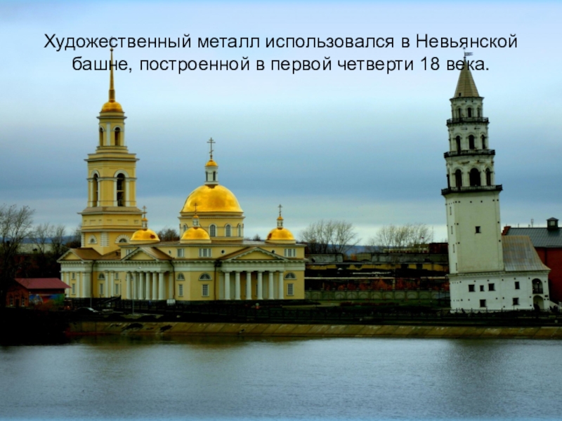 Слайд 5Художественный металл использовался в Невьянской башне, построенной в первой четверти 18
