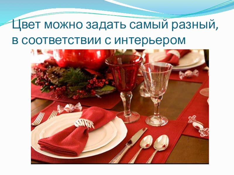 Слайд 5Цвет можно задать самый разный, в соответствии с интерьером