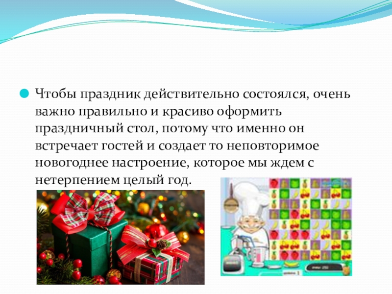 Презентация, доклад по предмету Основы кулинарии Сервировка новогоднего стола 10 класс