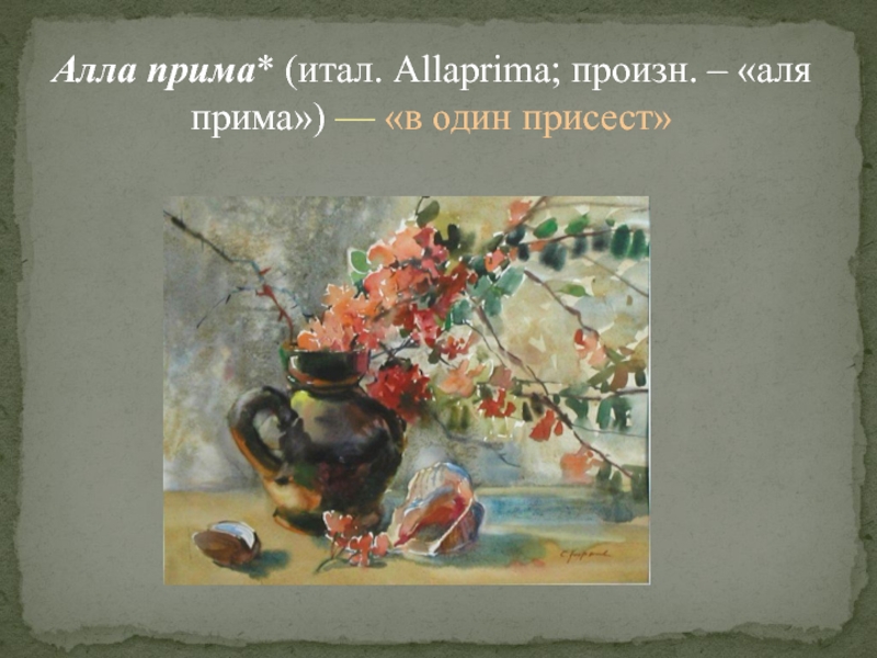 Слайд 4 Прием алла - прима применим как в масляной живописи, так