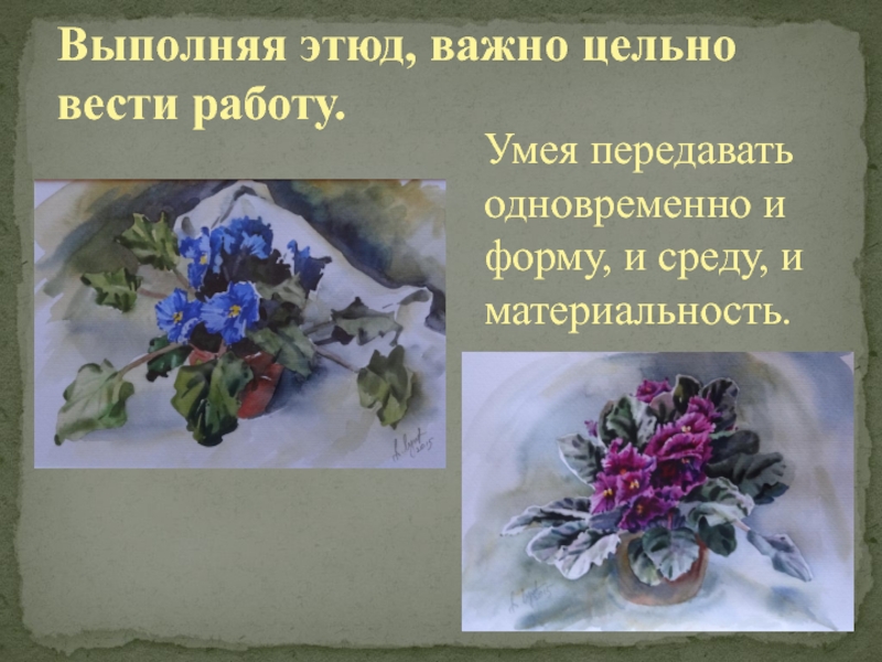 Слайд 8Выполняя этюд, важно цельно вести работу.