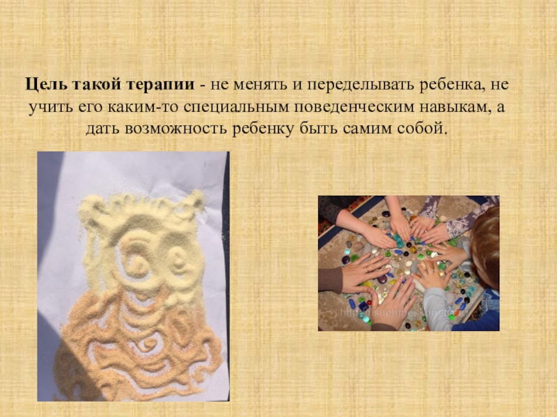 Слайд 4Цель такой терапии - не менять и переделывать ребенка, не учить