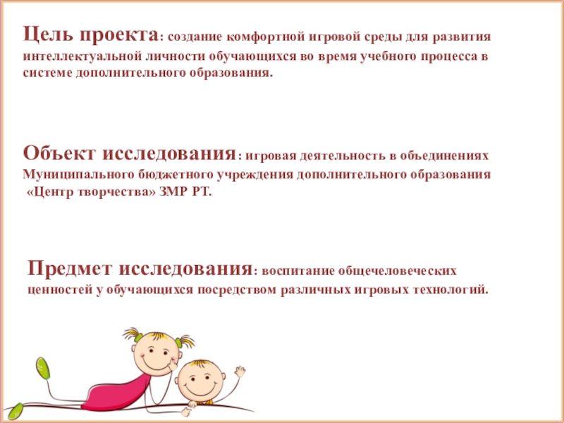 Объект исследования: игровая деятельность в объединениях Муниципального бюджетного учреждения дополнительного образования