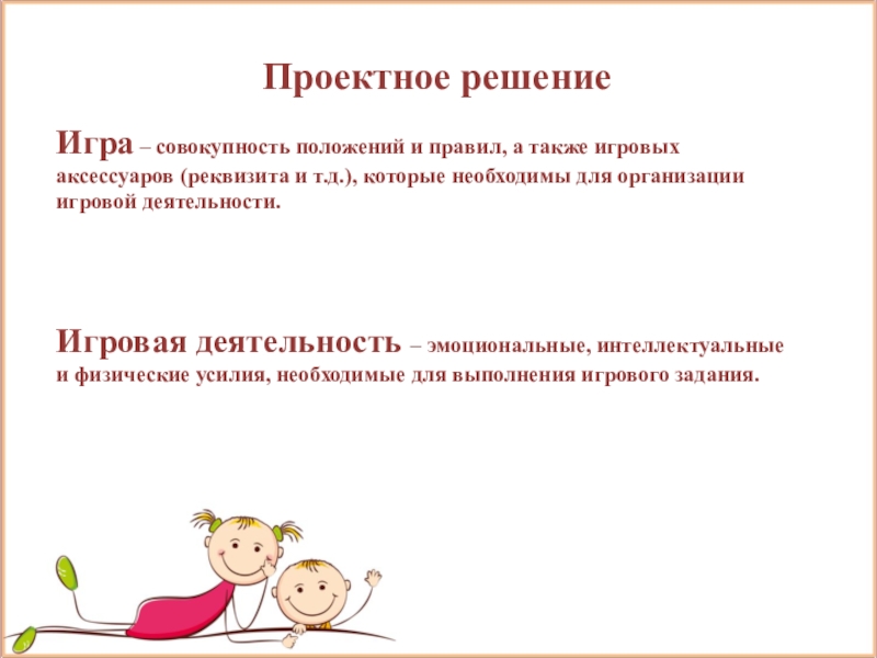 Игровая деятельность – эмоциональные, интеллектуальные и физические усилия, необходимые для выполнения игрового задания.