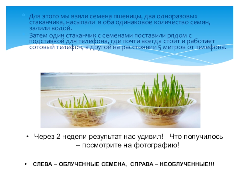 СЛЕВА – ОБЛУЧЕННЫЕ СЕМЕНА, СПРАВА – НЕОБЛУЧЕННЫЕ!!!