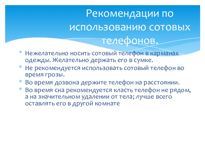 Рекомендации по использованию сотовых телефонов.
