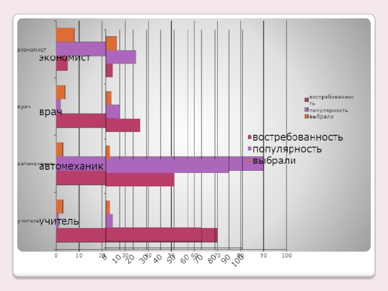 Слайд 9 Рейтинг выбираемых профессий в 8 классе