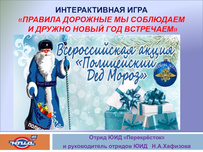 ИНТЕРАКТИВНАЯ ИГРА «ПРАВИЛА ДОРОЖНЫЕ МЫ СОБЛЮДАЕМ  И ДРУЖНО НОВЫЙ ГОД ВСТРЕЧАЕМ»Отряд ЮИД «Перекрёсток» и руководитель