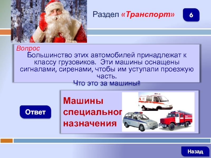 ВопросБольшинство этих автомобилей принадлежат к классу грузовиков. Эти машины оснащены сигналами, сиренами, чтобы им уступали проезжую часть.