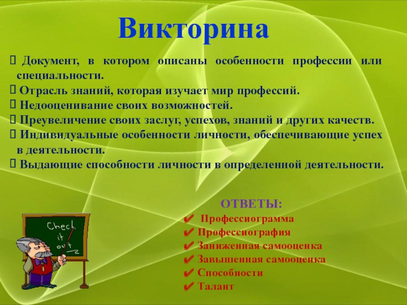 Профессиограмма - описание особенностей конкретной профессии, раскрывающее специфику профессионального труда и требований, которые предъявляются к человеку.
